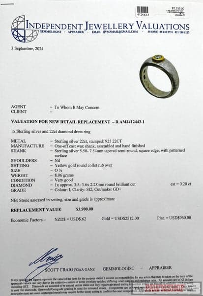 Sterling Silver and 22ct Yellow Gold Diamond Dress Ring ~ $3,900!
