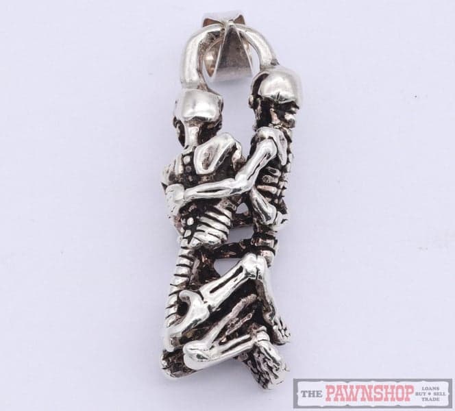 On offer here we have this sterling silver "skeleton lovers" pendant.