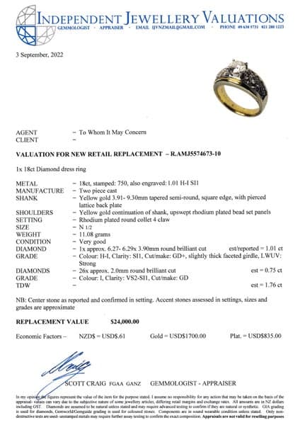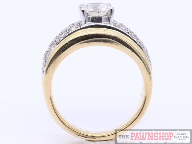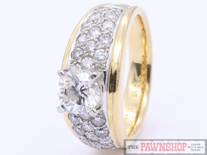 On offer here is a 18ct Yellow Gold Diamond Dress Ring with 1.01ct diamond in the middle and 0.75ct diamonds on the shoulders.