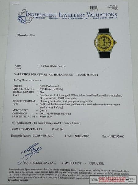 Replacement Value: $2,450 NZD
