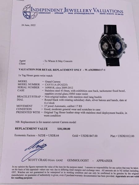 Replacement Value: $10,100 NZD