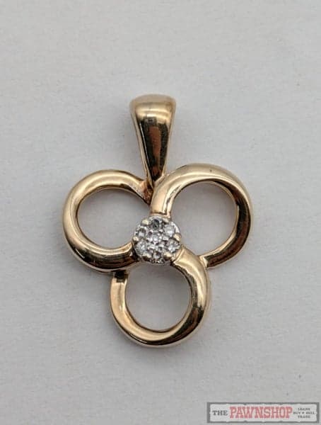 On offer here is a 9ct Yellow Gold Flower/ Clover Pendant with small diamonds. Tested diamonds in our diamond tester.