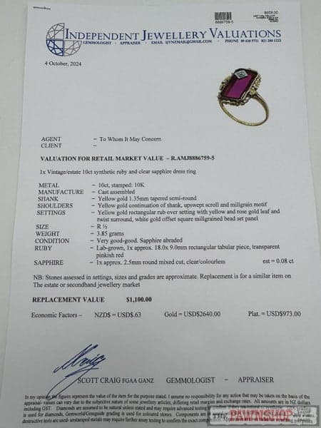 Replacement Value: $1,100 NZD