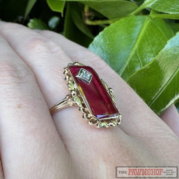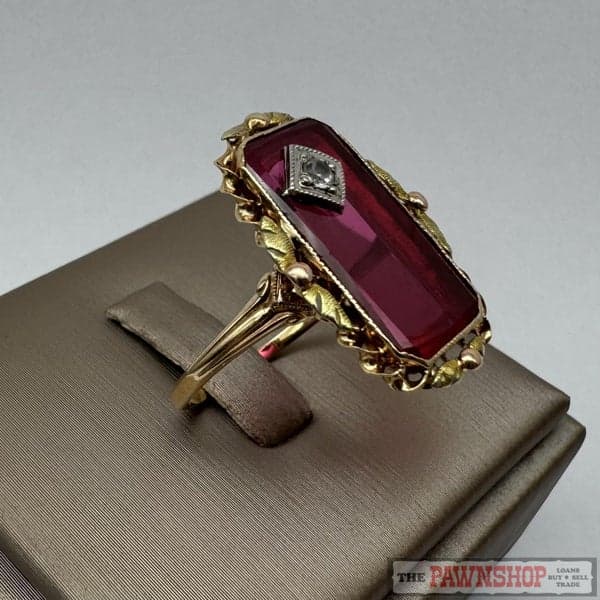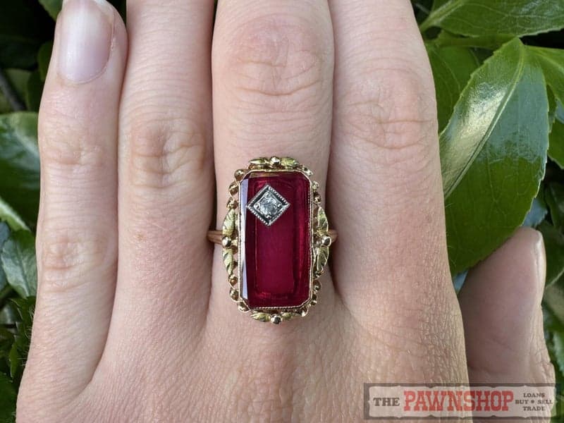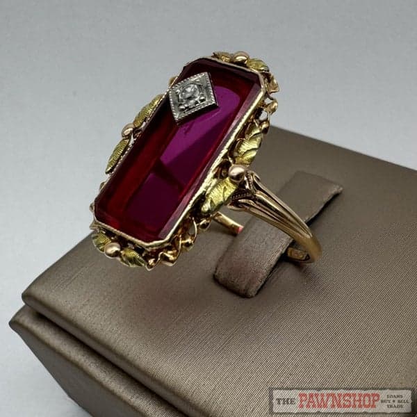Vintage 10ct Yellow Gold Synthetic Ruby & Clear Sapphire Dress Ring ~ $1,100!