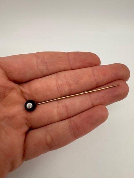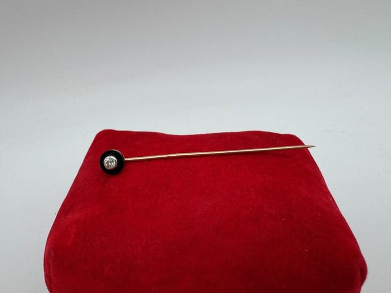Vintage 14ct Yellow Gold 0.10ct Diamond & Onyx Pin ~ $2,800!