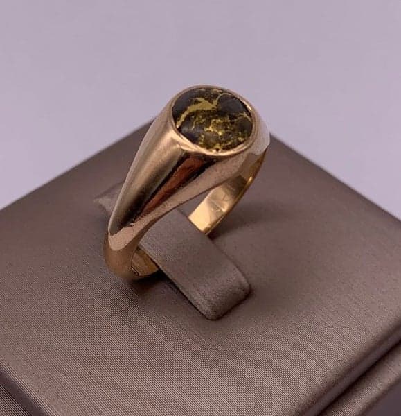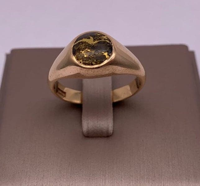 On offer here is a Vintage 15ct Yellow Gold Quartz Matrix (Gold Stone) Rubover Dress Ring.