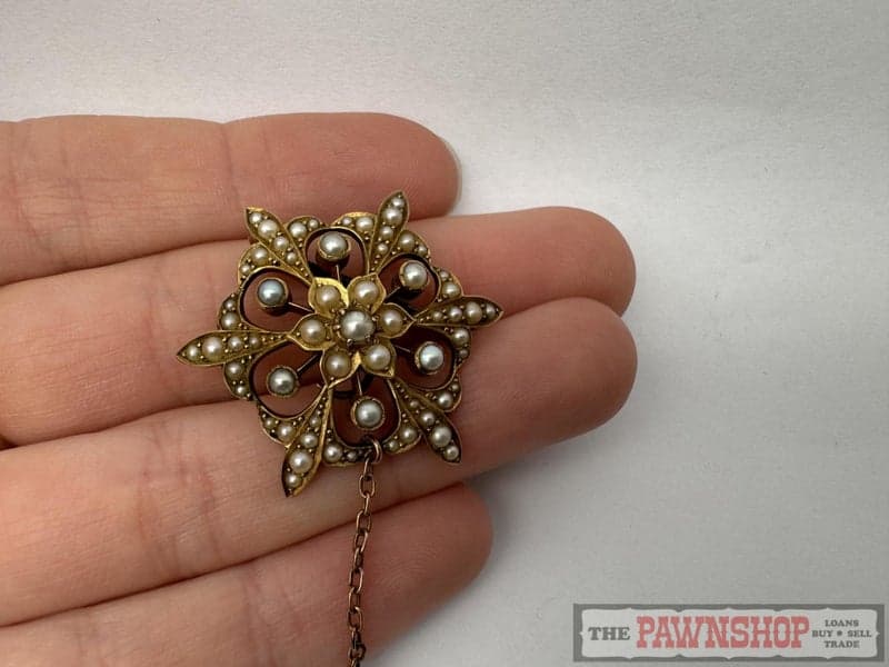 Vintage 15ct Yellow Gold Seed Pearl Brooch ~ $1,800!