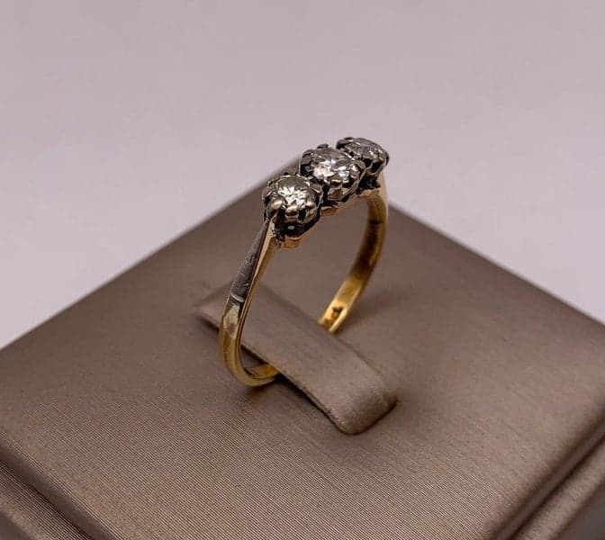 On offer here is a Vintage 18ct Yellow Gold 3 Stone Diamond Ring
