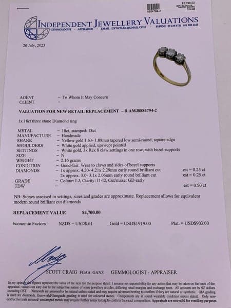 Replacement Value: $4,700 NZD