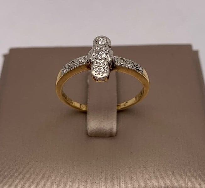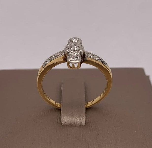 On offer here is a vintage style 18ct Yellow gold & Platinum 9 stone diamond dress ring.
