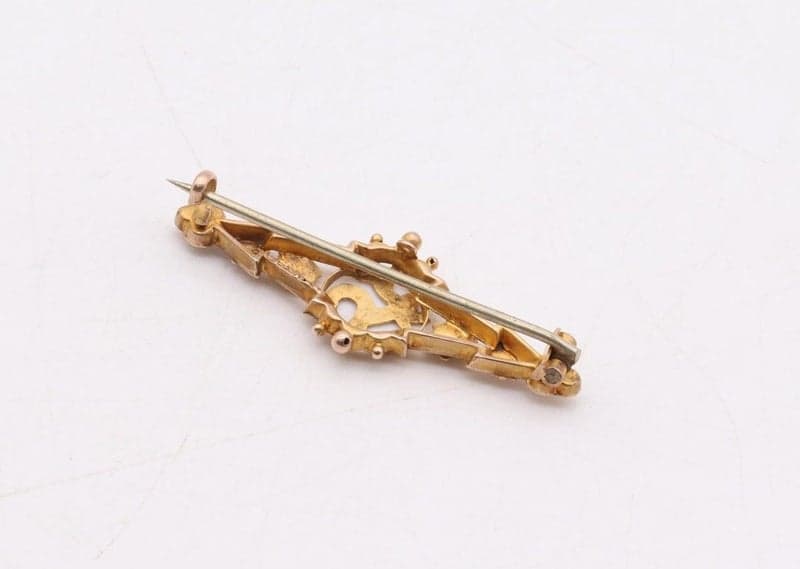 In great antique condition, metal pin is secure in the C clasp closure with no wobble.