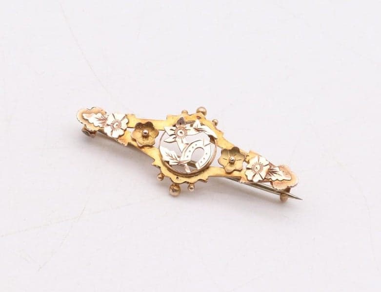 Vintage 9ct Rose & Yellow Gold Horseshoe Forget Me Not Sweetheart Brooch ~ 1.70g