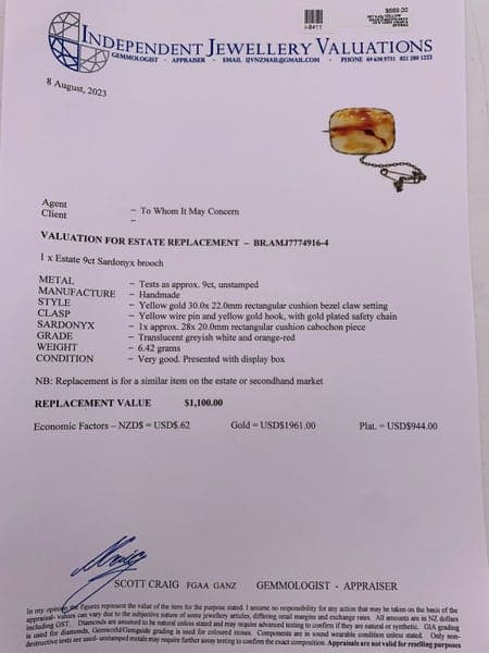 Vintage 9ct Yellow Gold Sardonyx Brooch ~ $1,100!