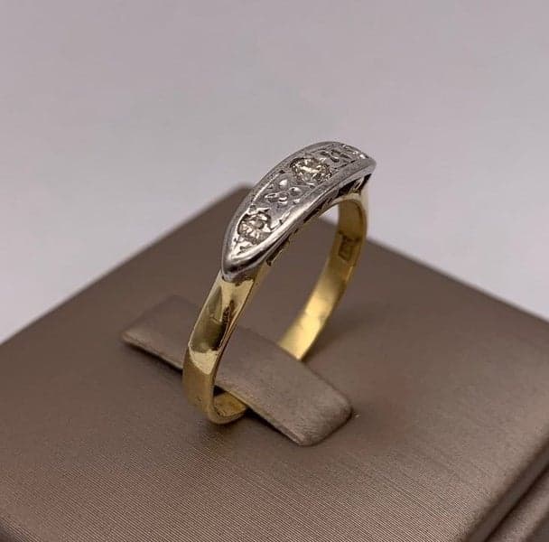 On offer here is a vintage style 18ct Yellow gold 3 stone diamond ring.